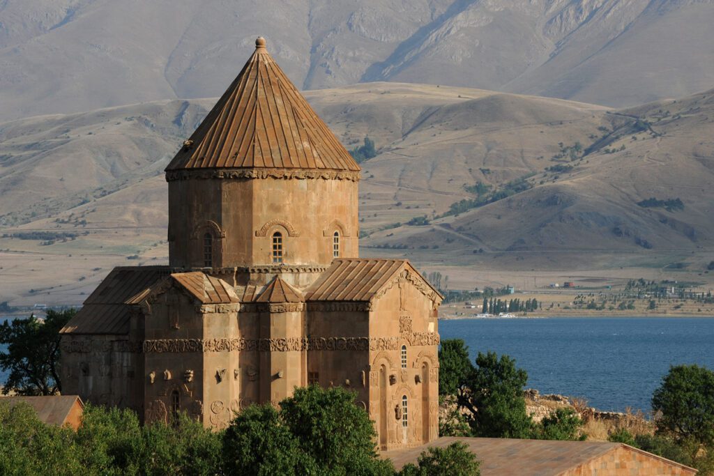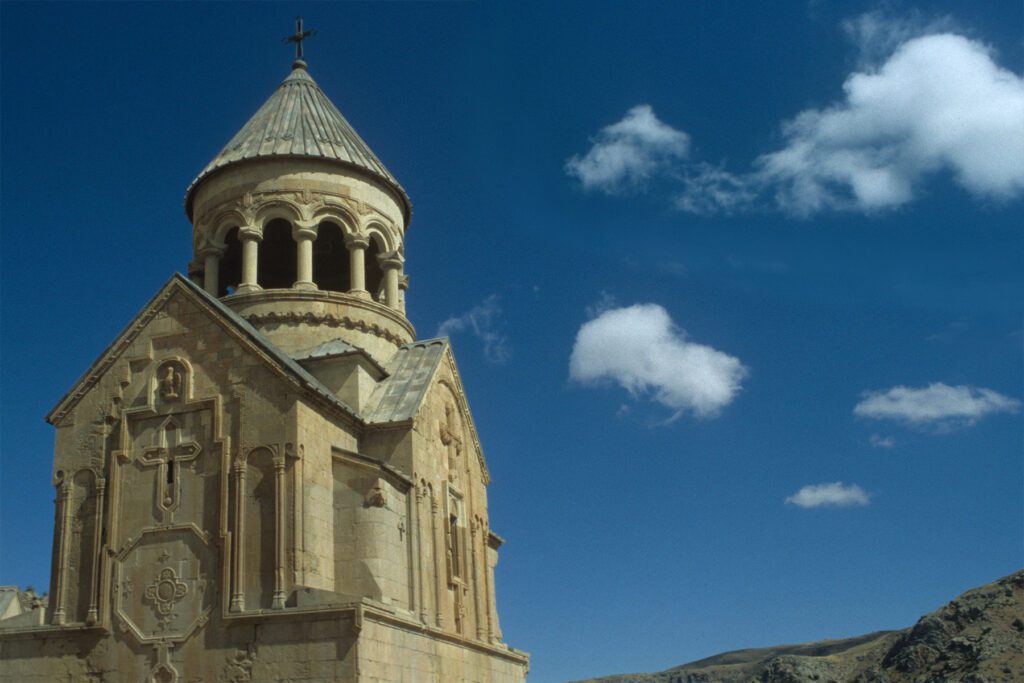 angeregt durch die Feuertempel des Zoroastrismus. Die Gebäude wirken dadurch würfelförmig. Dieses architektonische Prinzip ist den persischen Feuertempeln entlehnt. Die Kirchengebäuden gelten als Vereinigung zwischen Himmel und Erde. Aus dem Dunkel, der Höhle wendet sich der Gläubige zu Christus. Oft stehen die Kirchen (Hovhanavank, Sarmossavank) und Klöster (Tatev, Noravank) Schluchten. Auch hier wird der Bezug zur Unterwelt deutlich erkennbar. Großartige Beispiele der christlichen Kultur finden sich in den Klöstern Haghbat, Sinahin, Geghard und das architektonische Kleinod Noravank. Von traumhafter Schönheit ist der Blick auf das Kloster Chor Virap mit dem heiligen Berg der Armenier, dem Ararat als Hintergrund. Beispiellos ist die Kultur der Kreuzsteine, deren schönsten Exemplare in Noradus am Sewan-See stehen.