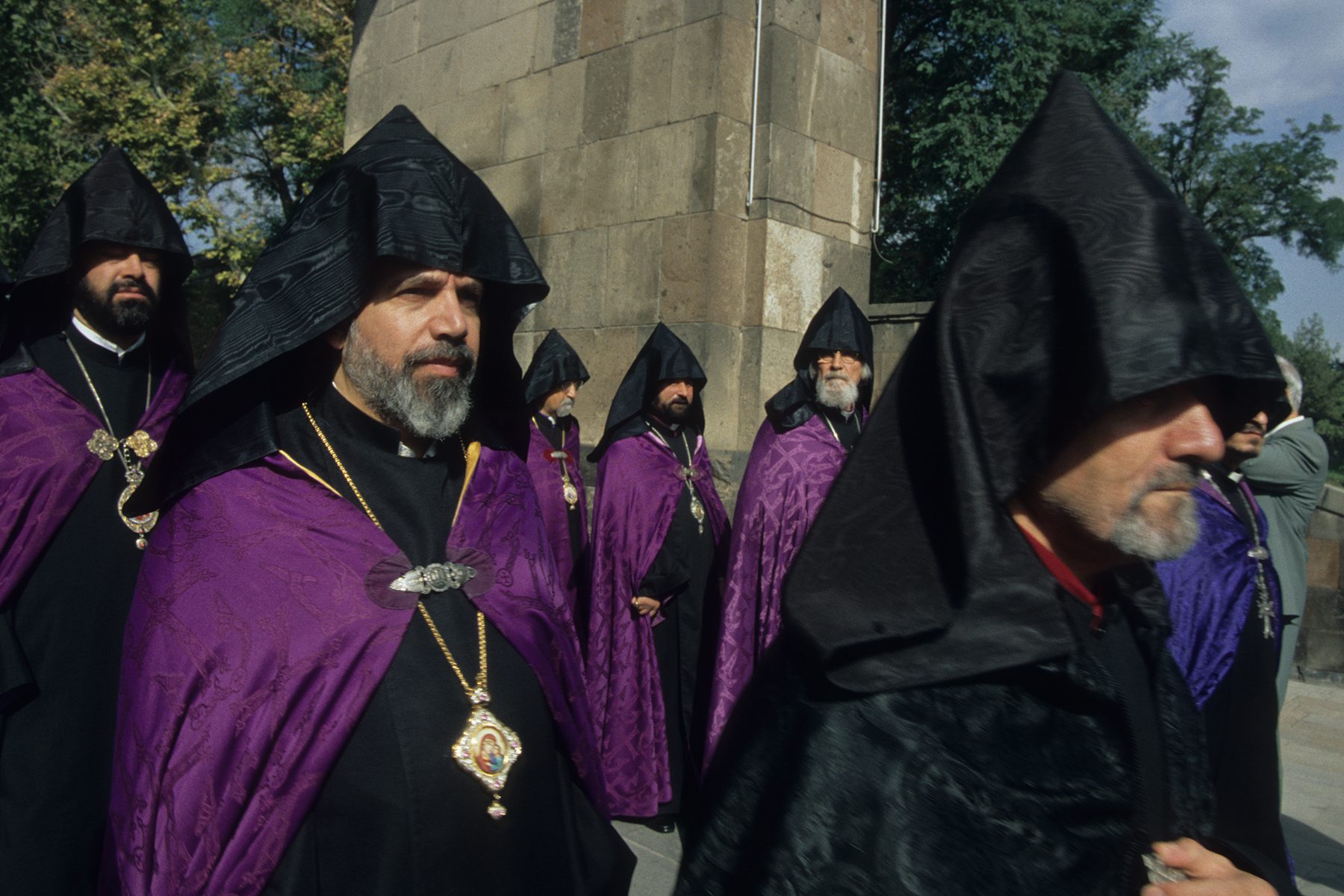 Bereits im Jahre 315 war das Christentum in Armenien Staatsreligion. Die Religionsgründung geht auf Gregor den Erleuchteten, dem Lehrer von Armenien, zurück. Armenien ist somit das erste Land in dem das Christentum Fuß fasste. Die sonntäglichen Eucharistiefeiern in der Kathedrale von Etchmiadsin geben einen eindrucksvollen Einblick in die tiefe Gläubigkeit der Menschen. Während in Georgien der Bezug zur Natur in die Religion integriert wird, wird beim armenischen Christentum ein Drang in die Tiefe, das Dunkel erkennbar. Die geistige Kultur Armeniens findet „unterirdisch“ statt. Die meisten Innenräume der Kirchen sind dunkel. Vor dem Heiligtum befindet sich der Gawitt, eine Versammlungshalle, in der früher alle nichtreligiösen Dinge geregelt wurden. Die Hauptgebäude bestehen aus einer Kuppel mit vier Stützen auf kreuzförmigem Grundriss,